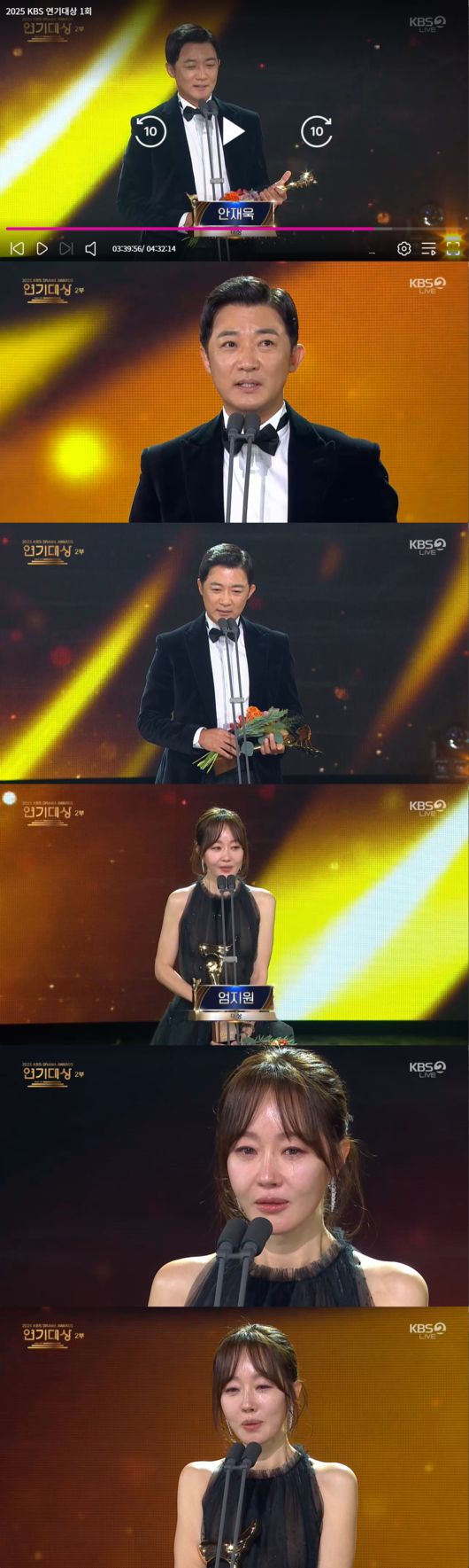 '2025 KBS 연기대상’ 배우 안재욱과 엄지원이 2025년 연기대상 공동 수상의 주인공이 됐다.