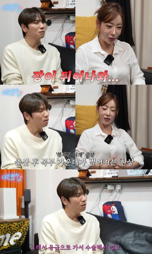 케이윌은 "아이 낳고 얼마 안 됐을때 몸관리 잘해야하지 않나. 근데 그때 살을 빼면 안좋을수밖에 없을 것 같은데"라고 걱정했고, 안소미는 "그때 산후조리를 해야하는데 산후조리를 잘 못해서 산후풍 오고 항문이 빠지고 수술하고. 아이를 데리고 '개콘'에 출근하기 시작했다. 업고 방송하는데 아기가 너무 무거운거다. 아기띠 사이로 장이 튀어나오더라. 녹화하는데. 찍찍이로 해서 녹화 끝나고 나오는데 장이 튀어나오더라. 왜냐면 아이를 낳으면 복직근이 열려있다. 거기 사이로 장이 나온거다. 응급으로 가서 수술해서 넣고 다음날 아이 업고 출근하고 이랬다"고 말해 충격을 안겼다.