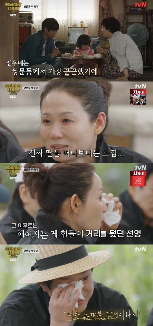 2일 방송된 tvN 예능 ‘응답하라 1988’ 10주년 특집 최종회에서는 10주년을 맞아 10년 만에 다시 뭉친 쌍문동 가족들의 1박 2일 MT 마지막 이야기가 그려진 가운데 김선영과 고경표가 눈물을 보였다.