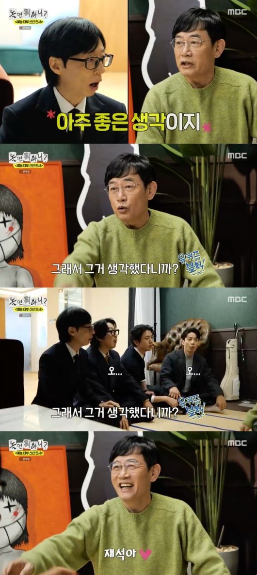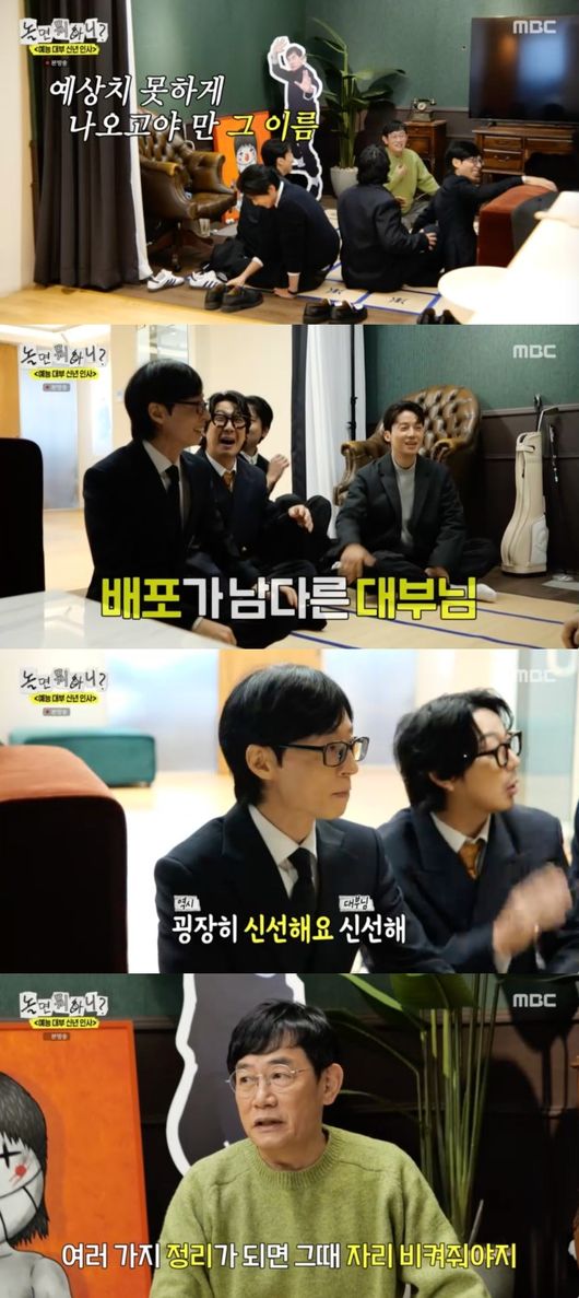 3일 오후에 방송된 MBC 예능프로그램 ‘놀면 뭐하니?’에서는 ‘예능 대부 신년인사’가 진행됐다. 유재석과 하하, 주우재, 허경환은 ‘예능 대부’ 이경규를 만나기 위해 그의 사무실을 찾았다.