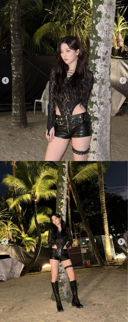 특히 블랙 레이스 상의에 레더 쇼츠를 매치한 슬기는 슬림한 허리 라인과 탄탄한 각선미를 드러냈으며, 시크하면서도 섹시한 매력을 동시에 발산해 시선을 사로잡았다.