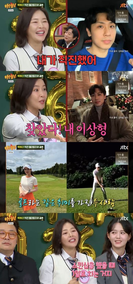 해외여행에서 김태술을 처음 만난 박하나는 결혼을 주제로 이야기하던 중 이상형이라 느끼면서 핑계를 만들어 계속 불러냈다고. 그는 “골프 취미도 같다. 그래서 한 14시간 안 보냈다”라고 말했다.