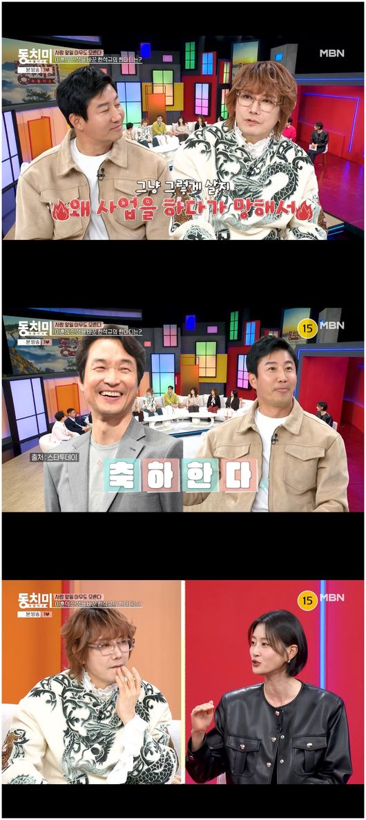 이훈은 “데뷔 전에 한석규가 ‘축하한다’라고 했다. 그래서 한 작품, 두 작품 찍으면서 배우 생활을 하게 됐다”라며 감사 인사를 전했다. 그러자 김장훈은 “근데 이훈은 그럼 배우 생활을 잘하면 되는데, 왜 갑자기 사업을 해서 말아먹냐”라고 한 소리를 했고, 이훈은 “아니, 무슨 왜 갑자기 남의 이야기를 하냐”라며 핏대를 세워 김장훈과 '찐친 우정'을 드러냈다./osen_jin0310@osen.co.kr