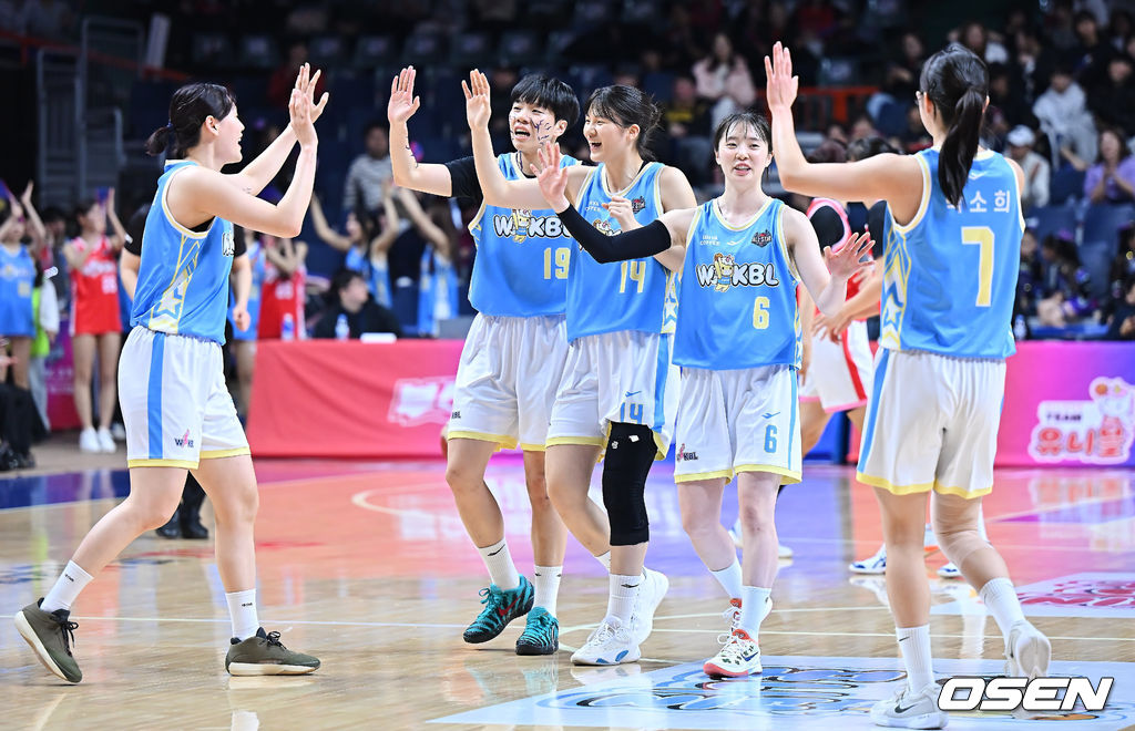 팀 포니블 선수들이 팀 유니블에 100-89로 승리한 후 기쁨을 나누고 있다. 2026.01.04 / foto0307@osen.co.kr