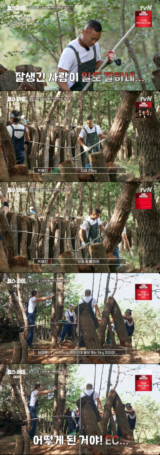 아모띠의 '특급 인맥'으로 합류한 박해진은 압도적인 작업량 앞에서도 당황하지 않고 남다른 실력을 발휘하며 폐목을 정리해 나갔다. 이를 지켜보던 정대세는 "잘생긴 사람이 일도 잘한다"며 박해진의 완벽한 모습에 감탄을 금치 못했다.