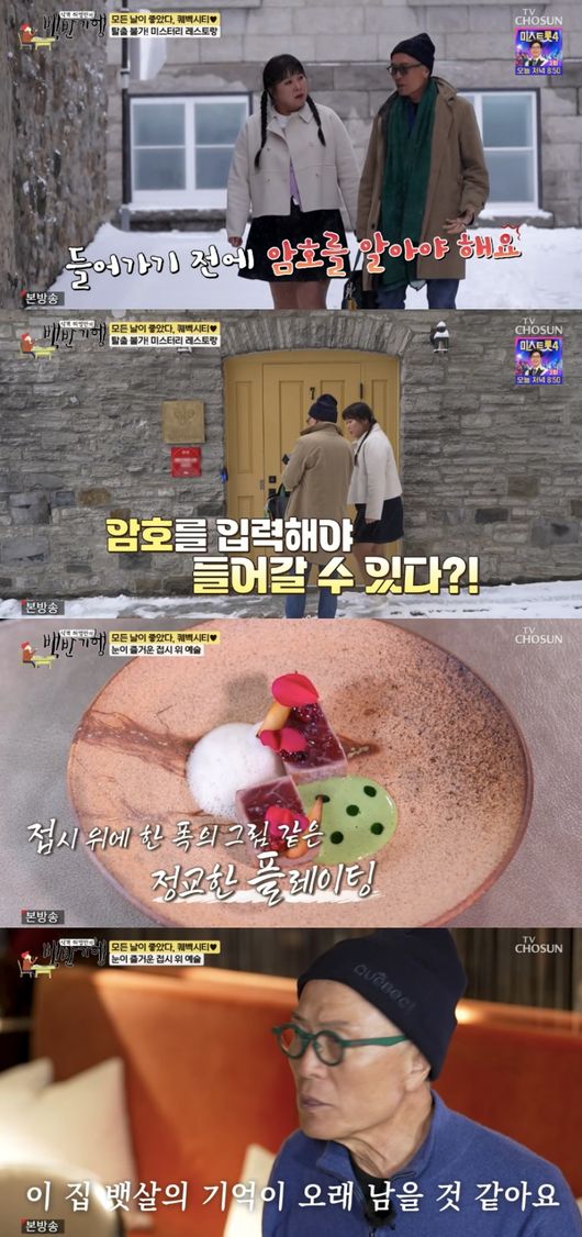 이날 비밀번호를 입력하고 들어가는 미스터리 레스토랑을 찾았다. 허영만은 “들어가기 전에 암호를 알아야 한다. 암호를 입력해야 들어갈 수 있다”고 했고, 강민경은 “방탈출 같은 느낌이냐”라고 궁금해했다.