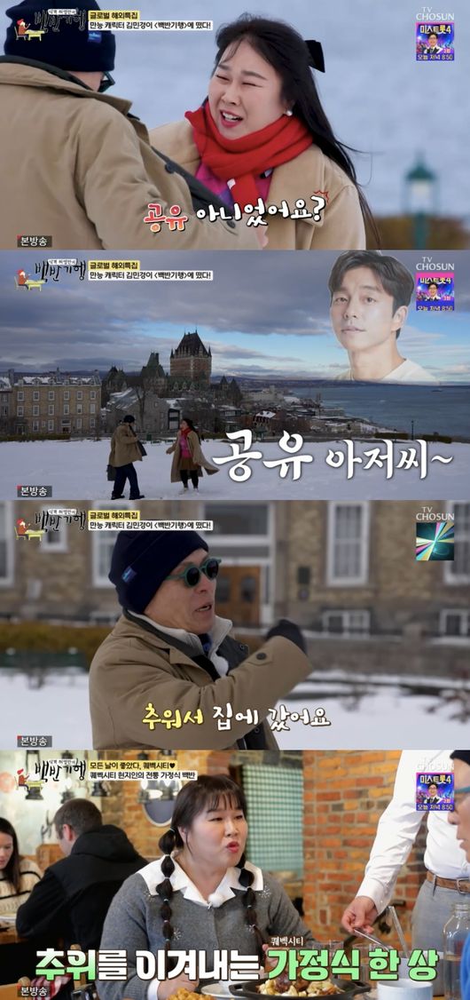 이날 허영만은 ‘도깨비’ 촬영지로 유명한 바스티옹 드 라 렌에서 오프닝 했다. 이때 김민경은 “아저씨”라고 외치며 등장했고, 허영만은 “민경 씨가 여기 캐나다에 웬일이냐”라고 물었다.