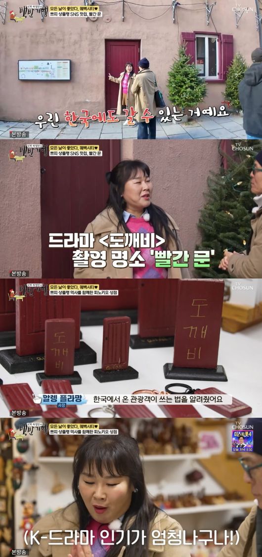 그러던 중 ‘도깨비’에 나온 빨간문을 발견한 김민경은 “선생님 여길 들어가면 우리 한국에도 갈 수 있다”라고 말했다. 허영만이 “나 가기 싫어”라고 거부했자 강민경은 “이 빨간문이 ‘도깨비’에 나와서 명소가 됐다. 왔다갔다 할 수 있다”라고 이야기했다.