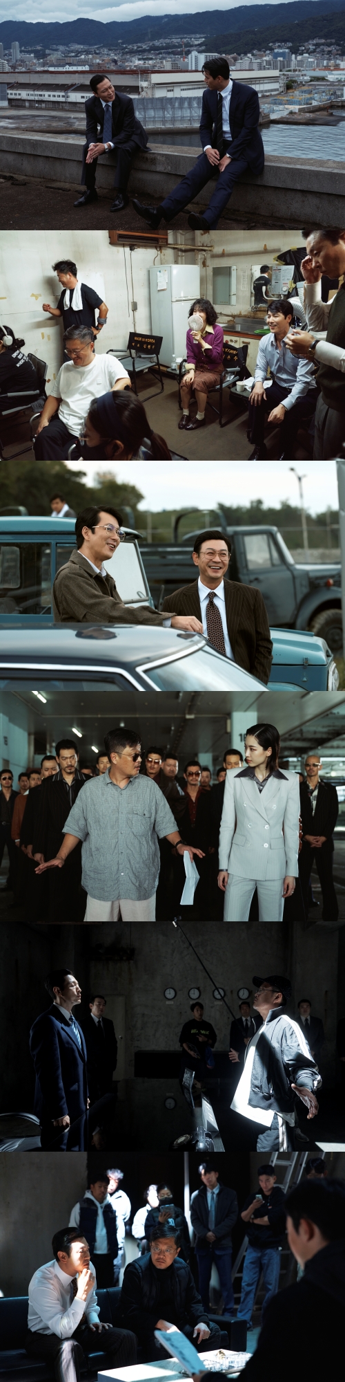 이어, 웃음이 끊이지 않는 화기애애한 케미를 보여준 정우성(‘장건영’ 역), 서은수(‘오예진’ 역), 박용우(‘황국평’ 역)는 완벽한 호흡을 선보인 촬영 현장의 유쾌한 분위기를 짐작하게 한다. 반면, 원지안(‘이케다 유지’ 역), 정성일(‘천석중’ 역), 박용우의 역할에 몰두한 표정과 우민호 감독의 열정적인 디렉팅이 돋보이는 모습은 배우와 감독이 함께 만들어간 활기 넘치는 현장의 에너지를 고스란히 전한다. 이처럼, 배우를 비롯해 모든 스태프들의 팀워크와 시너지가 빛나는 현장을 엿볼 수 있는 스페셜 비하인드 스틸은 완성도 높은 시리즈에 대한 기대감을 더욱 높인다.