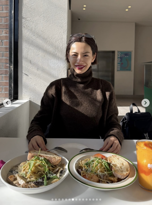 공개된 사진에는 브라운 톤의 니트 셋업에 부츠를 신고 식당에서 브런치를 즐기는 나나의 모습이 담겼다. 누드톤의 화장과 함께 딥 레드 컬러의 립스틱을 바른 모습이 눈길을 끈다. 나나는 사진 중에 환하게 웃는 모습을 공개하며 그간의 팬들의 걱정을 한번에 씻었다.
