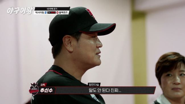 이어진 1회 말 공격에서 주수진과 신수지, 송아가 연속 안타를 터뜨리며 무사 만루의 빅 찬스가 찾아왔다. 직후 4번 타자 신소정이 타석에 들어서며 분위기가 최고조에 달했지만, 신소정의 타구가 3루 직선타로 잡히며 1아웃, 바로 옆 3루 베이스 터치와 2루 송구까지 연결되며 단숨에 3아웃이 되는 ‘삼중살’을 당했다. “라인 드라이브를 조심하라”라는 윤석민 코치의 조언에도 모든 선수가 전력을 다해 뛰다가 귀루에 실패한 것. 경기에서 좀처럼 보기 힘든 최악의 상황에 추신수 감독은 “말도 안 된다, 말도 안 돼…”라며 현실을 부정했고, 신소정은 “야구 더럽게 안 되네”라고 한숨을 내쉬었다. 윤석민 코치마저 “이 찬스를 이렇게 날리다니…”라며 탄식했고, 중계진도 쉽게 말을 잇지 못했다. /kangsj@osen.co.kr