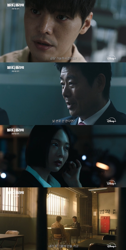 2월 4일(수) 디즈니+에서 공개되는 '블러디 플라워'는 ‘연쇄살인범의 살인 동기가 불치병 치료제 개발을 통해 세상의 많은 사람들을 살리기 위함이었다면?’이라는 질문에서 출발한다. 세상을 구할 수 있는 천재적인 의술을 지닌 연쇄살인범 이우겸(려운), 아픈 딸을 살리기 위해 살인범을 살려야 하는 변호사 박한준(성동일), 그리고 사형 심판을 통해 자신의 존재를 입증하려는 검사 차이연(금새록). 서로 다른 선택과 신념을 지닌 세 인물의 대립 속에서 사건은 예측할 수 없는 방향으로 전개된다.