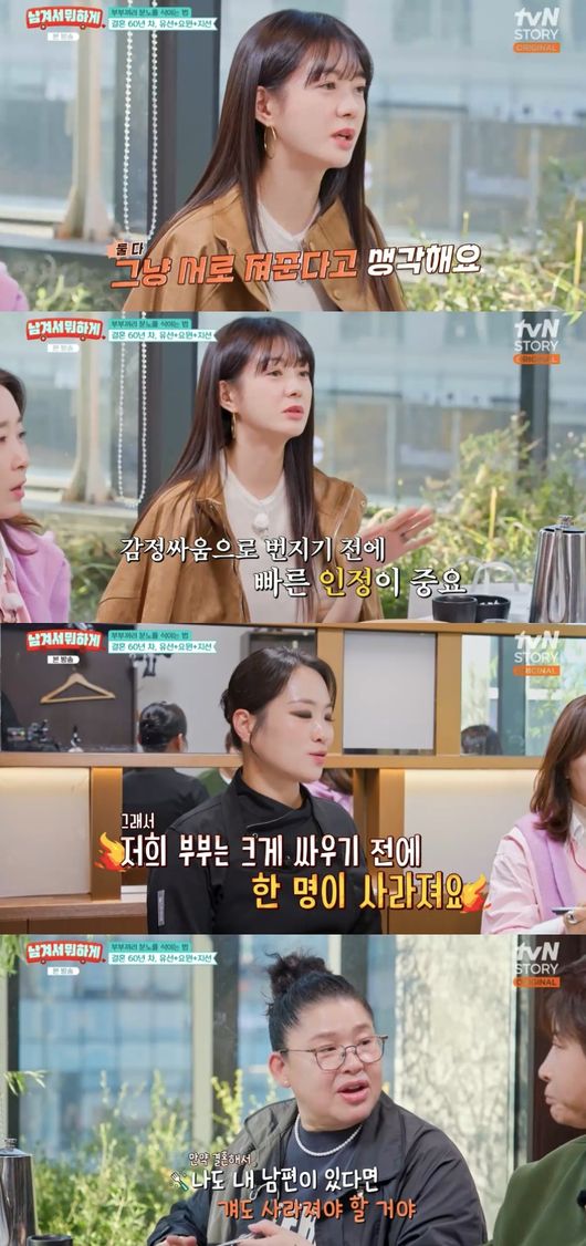 7일 방송된 vN STORY 예능 ‘남겨서 뭐하게’ 24회에서는 배우 이요원과 윤유선, 정지선 셰프가 부부싸움 일화를 전했다.