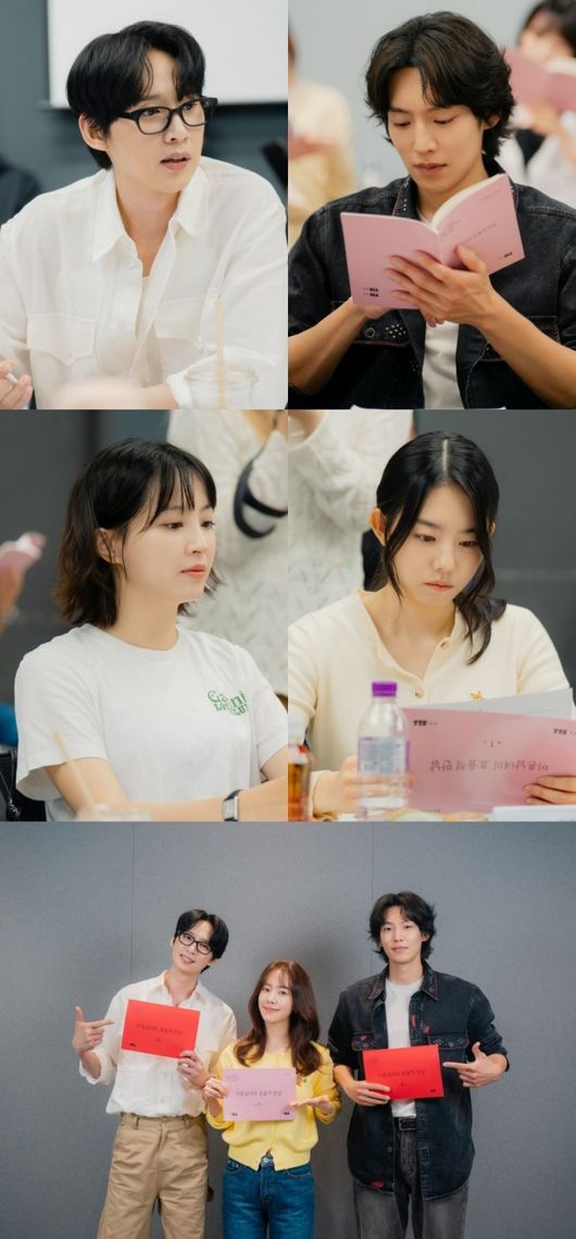 한지민(이의영 역), 박성훈(송태섭 역), 이기택(신지수 역), 정혜성(정현민 역), 김소혜(심새벽 역)가 의기투합해 ‘미혼남녀의 효율적 만남’을 이끌 예정인 가운데 다채로운 연기 호흡이 돋보인 대본 리딩 현장이 공개돼 이목을 집중시키고 있다. 이날 현장에는 이재훈 감독과 이이진 작가를 비롯해 출연 배우들이 한데 모여 설렘과 긴장이 뒤섞인 분위기 속에서 작품의 첫 페이지를 열었다.