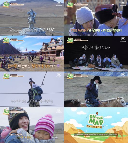새롭게 선보이는 엠넷플러스 오리지널 여행 버라이어티 '온더맵'(이한형 CP, 연출 이선영, 함가형)은 전 세계를 여행하며 곳곳에 숨겨진 챌린지에 도전하고, 이를 통해 단 하나의 지도를 완성해가는 K-POP 아이돌 글로벌 어드벤처 프로그램이다. 이번 여정의 주인공 엔시티 위시(시온, 리쿠, 유우시, 재희, 료, 사쿠야)는 익스트림과 대자연이 공존하는 땅 몽골로 떠나 설렘과 재미를 선사할 예정이다.