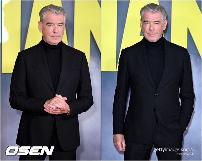 브로스넌은 7일(현지시간) 영국 런던 픽처하우스 센트럴에서 열린 ‘자이언트’ UK 갈라 스크리닝 레드카펫에 등장했다. 이날 그는 클래식한 블랙 슈트에 터틀넥 니트를 매치해 한층 세련된 겨울 신사룩을 완성했다. 광택이 살아 있는 슈즈로 마무리하며 71세라는 나이가 무색한 ‘정석 수트 핏’을 선보였다.