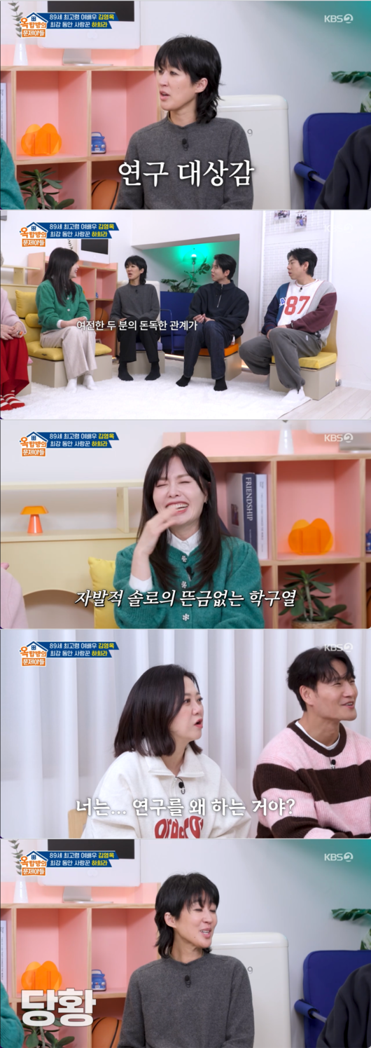 8일 오후 방송된 KBS 2TV ‘옥탑방의 문제아들’에서는 배우 김영옥과 하희라가 게스트로 나섰다.