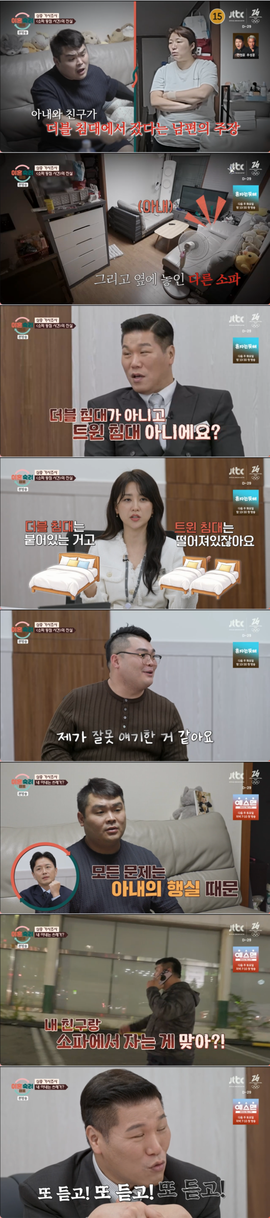 하지만 가장 큰 갈등은 이른바 ‘소파 동침 사건’이었다. 남편은 집으로 친구들을 불러 술을 마시던 중 아내와 싸웠고, 먼저 방에 들어가 잠이 들었다고 회상했다. 이후 물을 마시러 나왔을 때 아내가 거실 소파에서 남편의 친구와 함께 자고 있었다는 것.