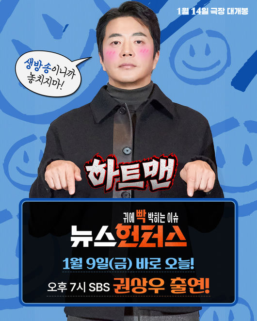 2026년 새해 극장가에 유쾌한 에너지와 웃음을 전할 영화 '하트맨'의 주역, 권상우가 바로 오늘 1월 9일(금) 오후 7시 SBS '뉴스헌터스'에 생방송 출연한다.