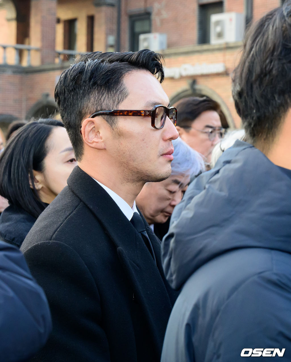 배우 변요한이 장례 미사를 마치고 영결식장으로 이동하고 있다. 2026.01.09 /jpnews@osen.co.kr
