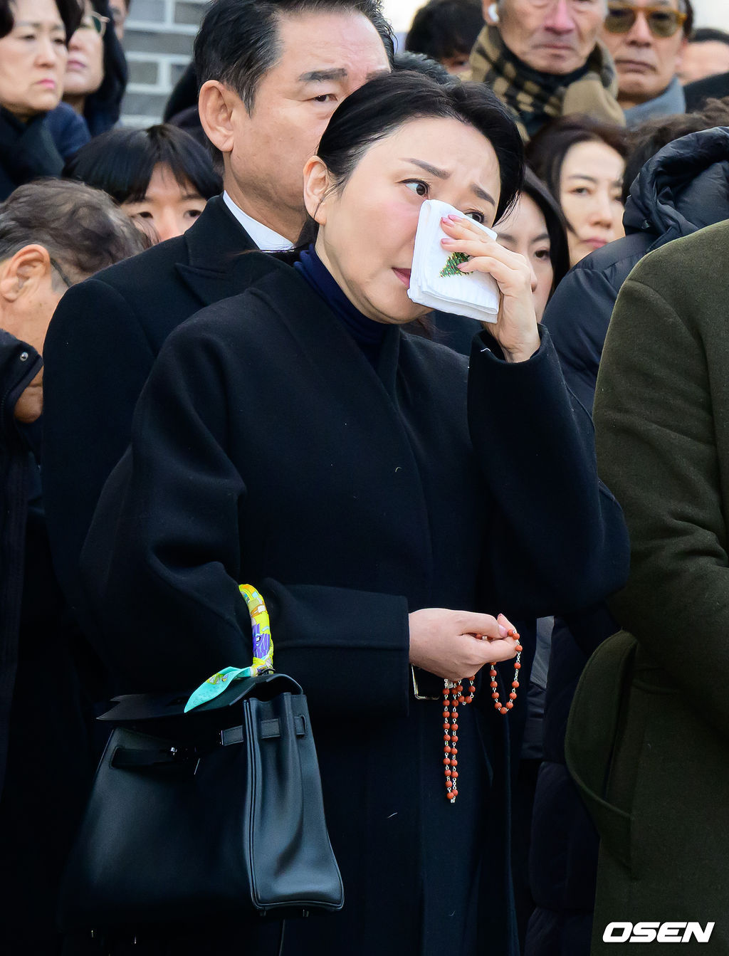 배우 김나운이 장례 미사를 마치고 영결식장으로 이동하고 있다. 2026.01.09 /jpnews@osen.co.kr