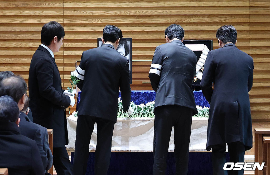 영결식에서는 고인의 마지막 소속사 아티스트컴퍼니의 수장인 정우성과 이정재가 각각 영정과 훈장을 들며 고인을 배웅했다. 운구는 설경구, 박철민, 유지태, 박해일, 조우진, 주지훈이 맡았다.