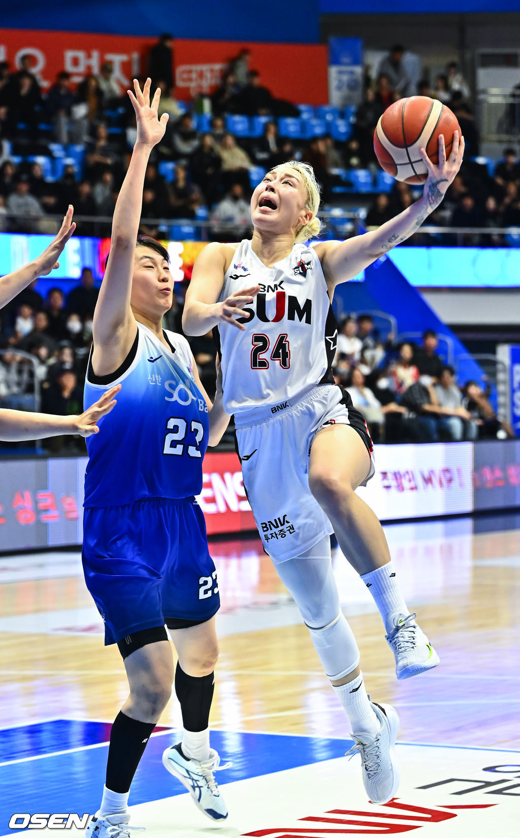 1쿼터 BNK 김소니아가 골밑슛을 시도하고 있다. 2026.01.10 / soul1014@osen.co.kr