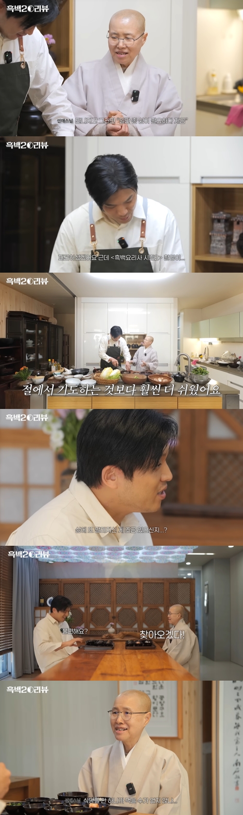 안성재는 "그럼 '흑백요리사2' 촬영이 피곤하셨겠다"고 했고, 선재스님은 "난 재밌었다. 절에서 기도하는 것보다 더 쉬웠다"며 웃었다.