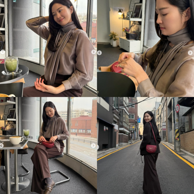 또 다른 사진에서는 창가 자리에 앉아 여유로운 시간을 보내는 모습이 담겼다. 꾸민 듯 안 꾸민 듯한 표정과 편안한 포즈가 어우러지며 보는 이들까지 기분 좋게 만들었다. 이른바 ‘민폐 하객룩’이라는 말이 괜히 나오는 게 아니라는 반응이다.