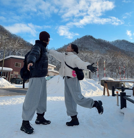 이날 최시훈과 에일리 부부는 동화 같은 하늘과 오붓한 오두막 그리고 깨끗한 느낌이 드는 설원에서 그림 같은 포즈를 취했다. 여행을 위해 다소 편안하게 차려 입었지만, 이들 부부는 겨울 부츠와 회색 트레이닝 바지로 커플룩을 완성했으며, 각기 다른 색깔의 패딩으로 시밀러 룩도 함께 완성했다.