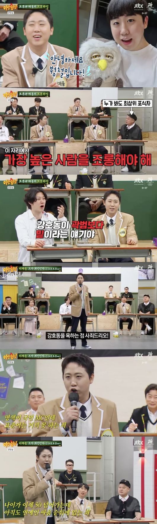 ‘조롱의 신’이라고 불리는 이재율은 “나는 조롱을 일 때문에 한다”라고 말했고 신동은 멤버들 대상으로 조롱을 해달라고 부탁했다. 이재율은 “이 자리에서 가장 높은 자리에 있는 사람을 해야 한다”라며 강호동을 저격하겠다고 말했다.