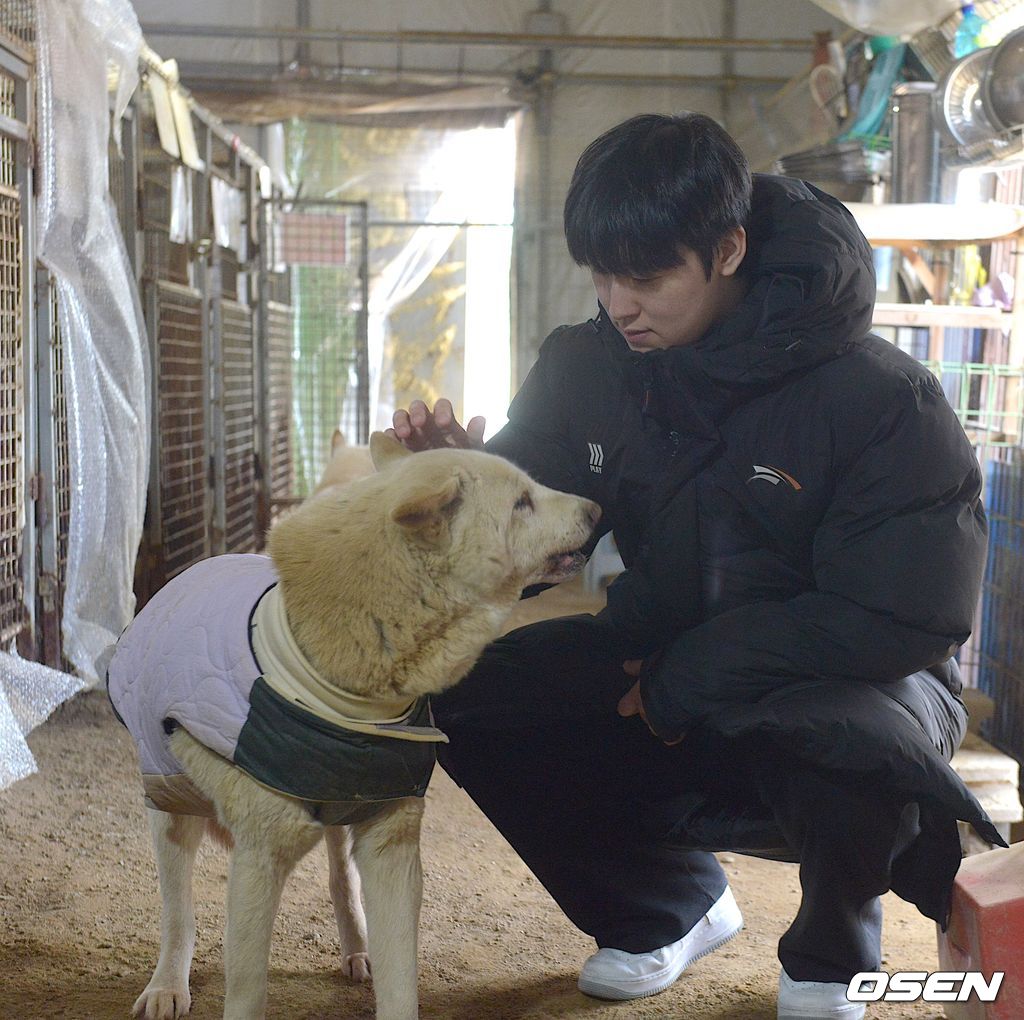 김건우는 점심도 거른채 ‘행동하는 동물사랑’ 유기견 보호소를 찾아가 해가 질 때까지 봉사활동에 집중했다. 체감 온도가 영하 15도를 넘는 추운 날씨에도 사료 배급과 견사 청소, 유기견 산책 등을 묵묵하게 임했다.