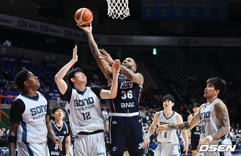 부산 KCC 숀롱이 고양 소노 강지훈의 마크를 피해 골밑슛을 시도하고 있다. 2026.01.12 / foto0307@osen.co.kr