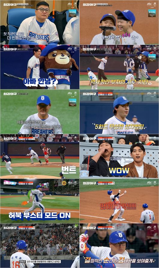 방송 후 사회관계망서비스에서는 “드디어 최강시리즈! 직관이라 선수들도 설레는 듯”, “윤석민 아들 강속구 대박”, “브레이커스 주니어들 애국가 부르는 거 너무 귀여워”, “직관팬들 응원 열기에 안방 1열에서 보는 나도 들떠서 최강야구 보는 중”, “오주원 제구 미쳤다”, “이학주 팬들 앞에서 날아다니네”, “허부기 전력질주부터 강민국 번트, 조용호 안타, 이학주 3루타까지 5회말 도파민 샤워 그 자체”등 뜨거운 반응이 이어졌다. /kangsj@osen.co.kr
