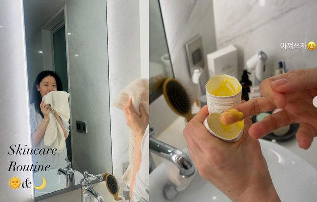 공개된 사진 속에는 이영애가 화장실에서 다양한 화장품을 사용해 세안하는 모습이 담겼다. 민낯임에도 투명한 이영애의 피부와 미모가 눈길을 끈다.
