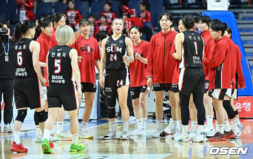 부산 BNK 선수들이 68-71로 패한 후 아쉬운 표정을 짓고 있다. 2026.02.22 / foto0307@osen.co.kr