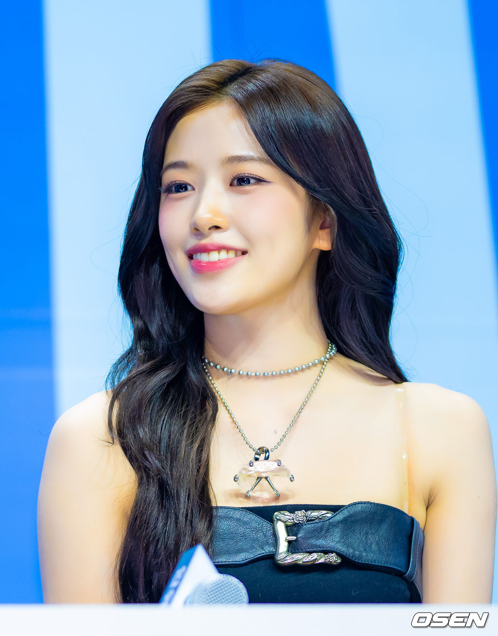 그룹 아이브 안유진이 쇼케이스 기자간담회에서 미소 짓고 있다. 2026.02.23 / rumi@osen.co.kr