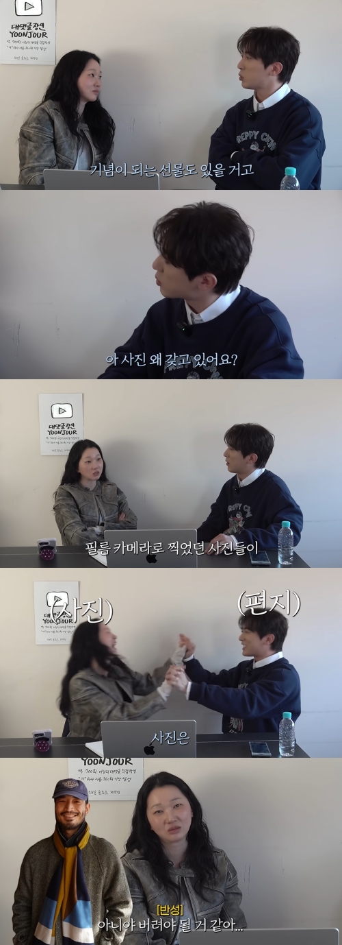 "넌 하나도 없냐?"는 질문에 김원훈은 "난 편지는 안 버린다. 편지는 뭔가 그때의 귀여운 감정들이 들어가 있다"고 답했다. 장윤주는 "뭐야, 사진이 차라리 낫다. 편지야 말로 불태워야 된다"고 발끈했다.