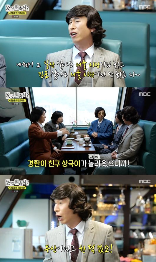 양상국과 KBS 22기 동기인 허경환은 "김해 제 동생입니다"라고 자랑스레 소개했다. 유재석도 사투리 연기에 애를 먹고, 하하 또한 '부산 바캉스' 만으로 부산과의 인연을 강조하던 상황. 창원에서 고등학교까지 나오고, 부산에서 대학교까지 나온 허경환과 달리 사투리가 어색한 유재석, 하하 맏형들을 향해 양상국은 "부산 짜베이(?)들이 많네"라고 역성을 내며 웃음을 자아냈다.