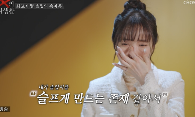 ‘X의 사생활’에서 유깻잎이 딸의 솔직한 속마음에 눈물을 보였다.