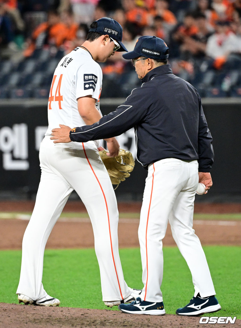9회초 2사 만루에서 한화 양상문 코치가 김서현을 교체하고 있다. 2026.04.14 / jpnews@osen.co.kr