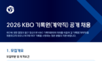 [OSEN=손찬익 기자] KBO가 2026시즌 공식 기록원 공개 채용에 나선다.KBO는 20일부터 KBO 기록원(계약직) 공개 채용을 실시한다고 밝혔다. 이번 채용은 KBO 기록강습회 수료증 소지자 또는 수료 예정자에 한해 지원이 가능하다.최종 합...