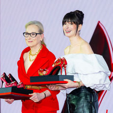 2026.04.08 13: 58메릴 스트립-앤 해서웨이,'한국 꽃신 스타일 하이힐 선물 받고 환한 미소'