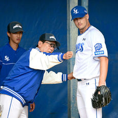 2026.02.20 11: 30새 외인투수 매닝 향해 조언 전하는 삼성 최일언 코치