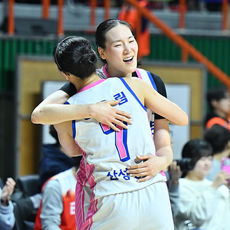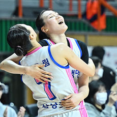 2026.02.21 16: 19연장 승리 기쁨 나누는 배혜윤과 강유림