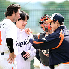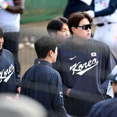 2026.02.21 11: 10류현진-노시환-정우주, '대표팀 유니폼 입고 한화와 연습경기 준비'