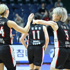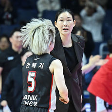 2026.02.21 15: 25안혜지와 하이파이브하는 박정은 감독