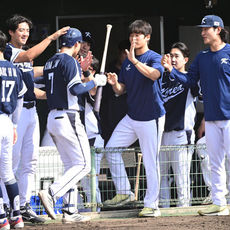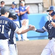2026.02.21 14: 50대표팀 김주원, '연습경기서 역전 스리런포 하이파이브'