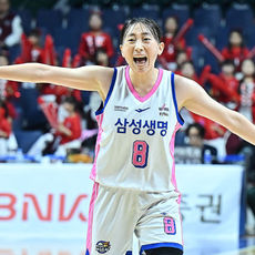 2026.02.21 14: 23김소니아, 3점슛 성공 세리머니