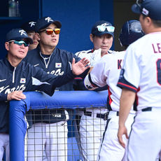 2026.02.26 15: 01노시환 희생번트 성공에 환한 미소짓는 대표팀 더그아웃